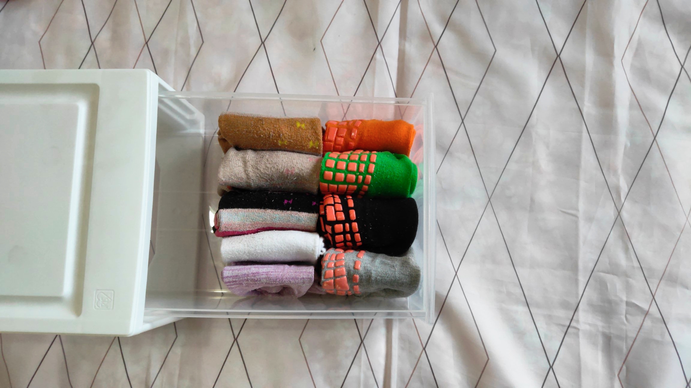 孩子的袜子我采用的这种方法,因为小小的不好叠,没几双配对也很方便。