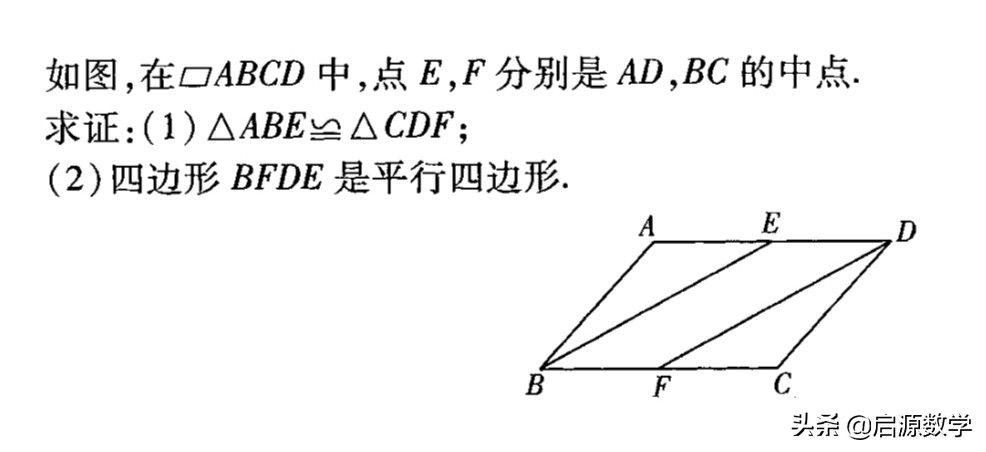 以上就是老师为大家分享的平行四边形判定常用的四种方法。要证明一个四边形是平行四边形,同学们一定先要将判定方法熟记于心,才能根据具体的题目条件判断出使用的证明方法。
