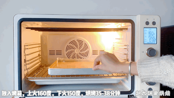 12、震去大气泡,送入预热好的烤箱,中下层,上火160度,下管150,烘烤30分钟,温度和时间仅供参考