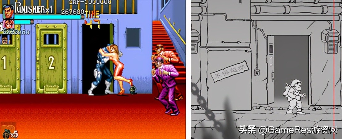 合金弹头的场景全长有六屏左右,如果全部手工绘制成本太大,也不利于引擎执行效率。因此用许多二方连续图素来拼接大场景是2D游戏通用的做法。