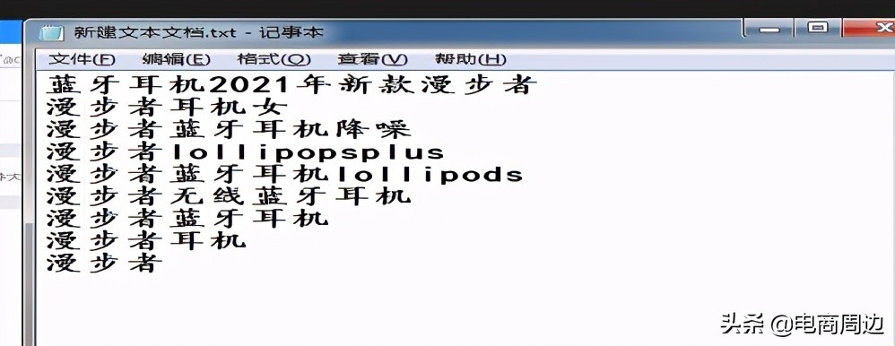 所以综上所述,我们可以得出一个结论,想要快速地提升质量分就只能是我们的相关性指标,那么快速提升相关性的方法是什么呢?就是通过组合创意标题来达到快速实现的目的,具体操作看下图,我们先将所有的关键词复制到文本上