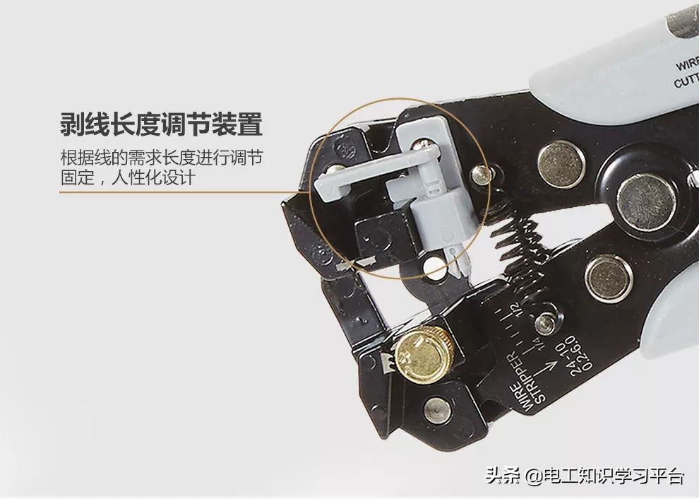 用于剥除电线头部的绝缘层,可剪电线、铜线、铝线、螺丝,是内线电工、电动机维修、仪器仪表电工常用工具。