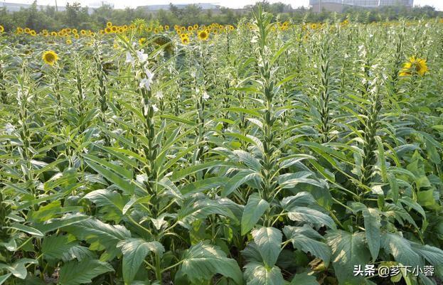 最后就是及时采收了,芝麻成熟之后,采收如果不及时的话,容易导致芝麻蒴果开裂,影响产量。在芝麻开始窜叶,植株下部的蒴果开始开裂的时候就要进行采收了。