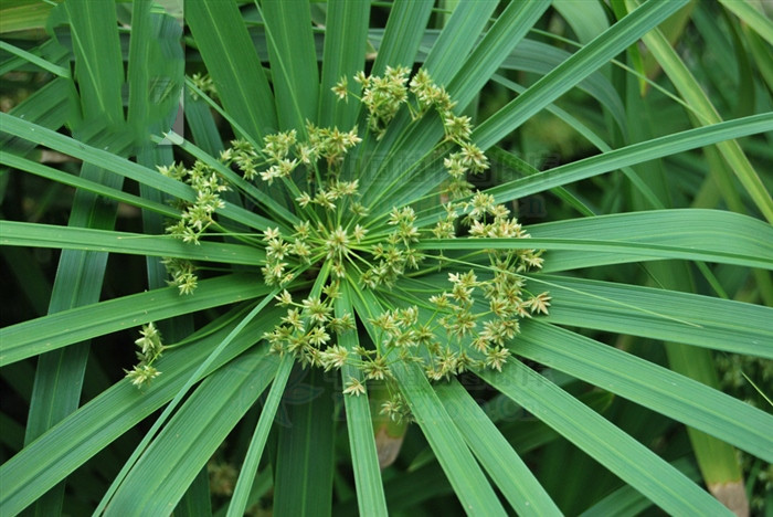 为莎草科植物风车草的茎叶。