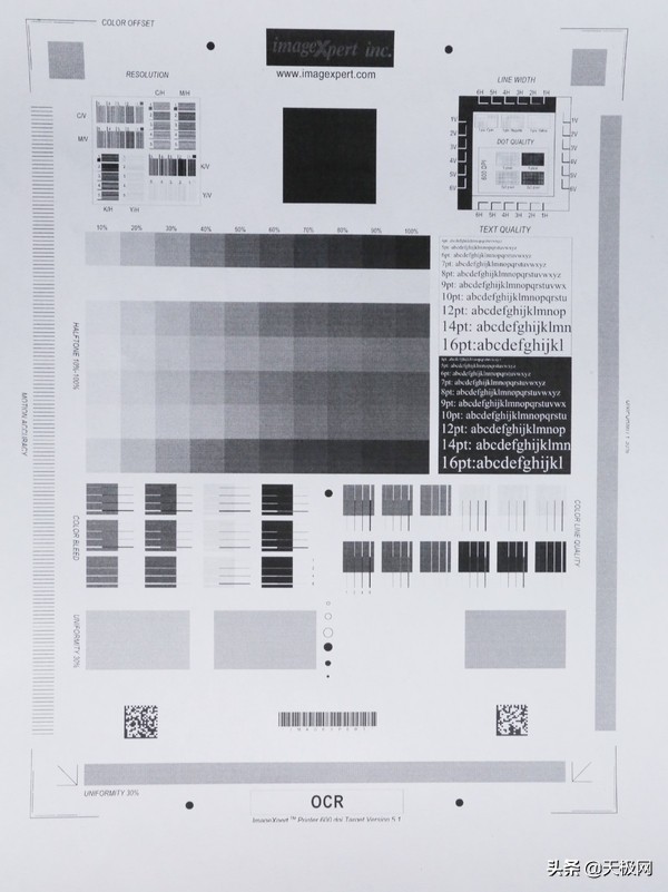 通过对奔图M6568NW的打印样张实拍图观察,天极网发现,输出的字体清晰锐利,黑色的深浅过度平滑自然,无论是黑底白字、还是白底黑字等测试样张都可以清晰地显示最小4P字体。