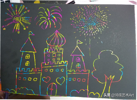 他们会有不同的颜色和烟花,是不是特别美呢!今天我们就来画一副春节时候的场景吧!