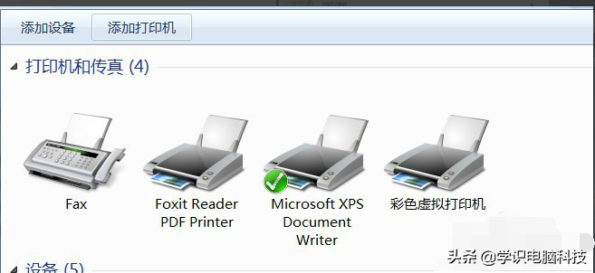 查看“设备和打印机”,已经添加了一个“彩色虚拟打印机”。