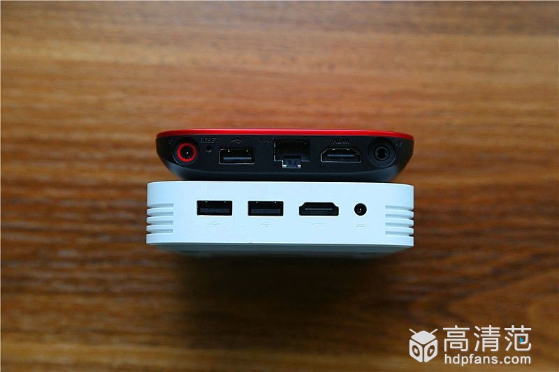 接口上,小米盒子3增强版有2个USB2.0接口,延续一贯的没有网口设计。天猫魔盒3Pro则只有一个USB2.0,但同时拥有网口、系统重置按钮与AV输出接口。这个AV输出接口同时支持3.5mm接口,支持外5.1、7.1声道,外接音箱没有问题。