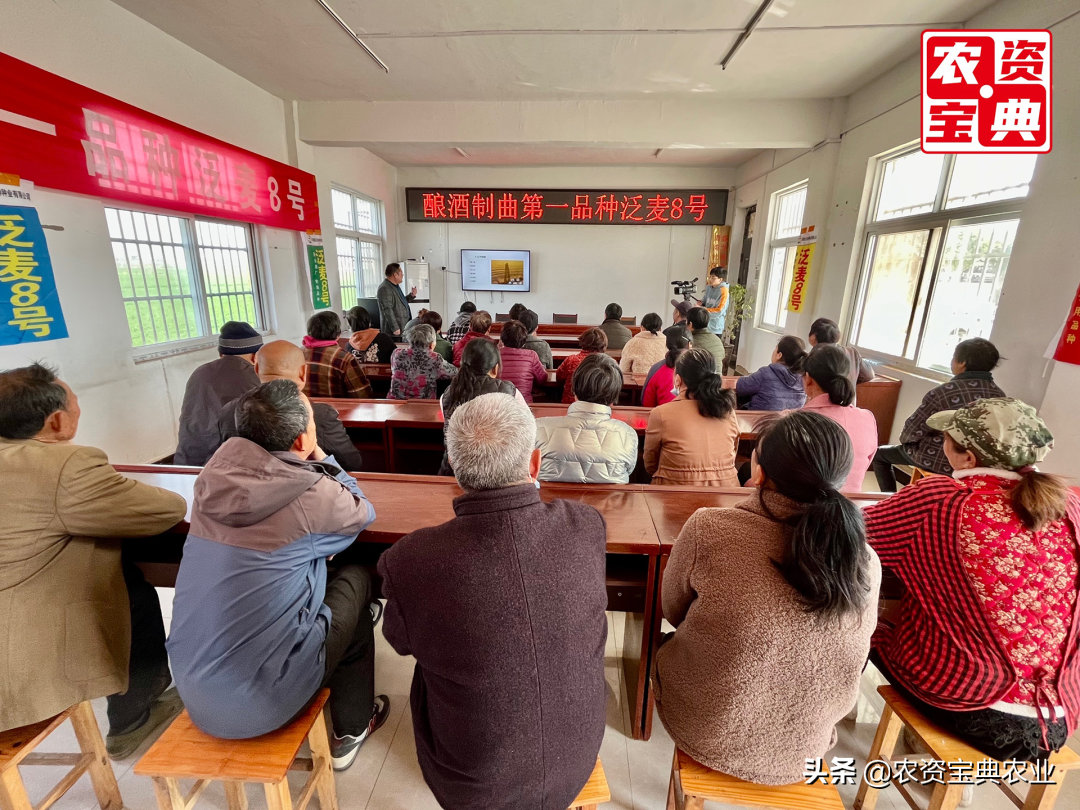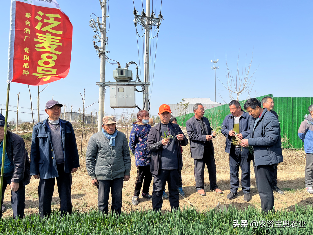 讲座结束后,专家带着农户们到田间进行“实操”。通过不同小麦品种的长势对比,优质酿酒专用小麦——泛麦8号以其“株高矮、强抗倒、穗子大、强抗冻、抗病强、产量高、加价收”等优良特点,深受种植户喜爱。