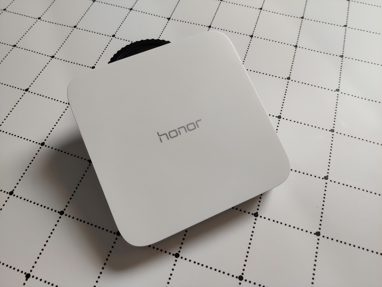 荣耀Pro电视盒子外观比较简约,正面有品牌LOGO的标识,其他的设计就没有了,看上去比较简洁干净。