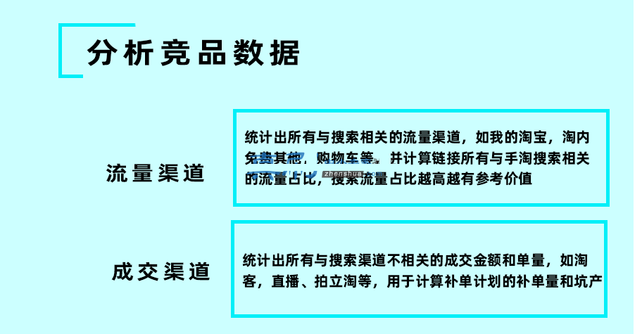 还有就是我们去看竞争产品的核心引流词和交易词,一定不是品牌词,但是和竞争产品是同一个品牌,可以忽略这一点,所以交易词也要一样。比如你要操作的交易词是西装男,竞争产品的交易词是西装男;在寻找竞争产品的过程中,也可以注意一些有参考价值的链接:30天内爆发搜索流量的链接或者搜索流量非常稳定的链接。如果店铺优化没有方向,可以有很好的参考。2、分析竞品的数据找到竞争产品后,我们还需要分析竞争产品的数据,包括竞争产品的流量渠道、交易渠道、引流词和交易词。