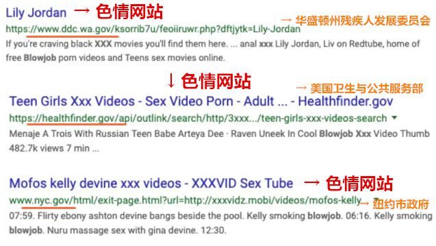 早在一年前,科技网站Gizmodo就曾报道过,大量美国政府网站被篡改成了色情网站/山寨诈骗网站。