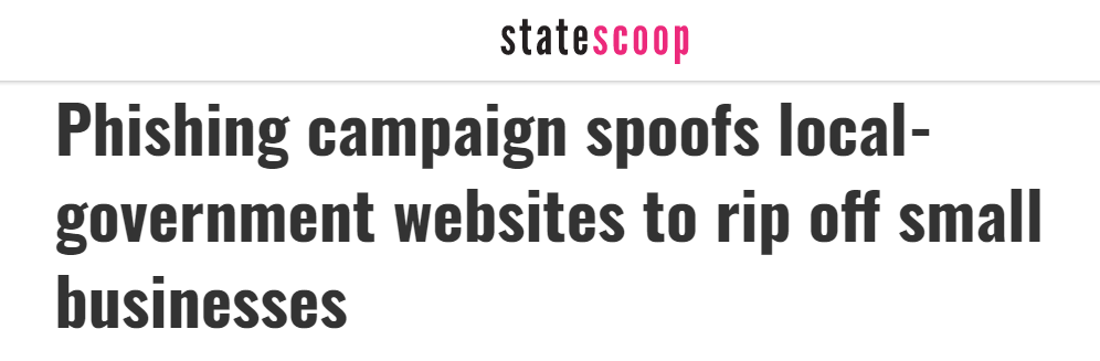 ▲Phishing campaign spoofs local-government websites to rip off small businesses (via statescoop)