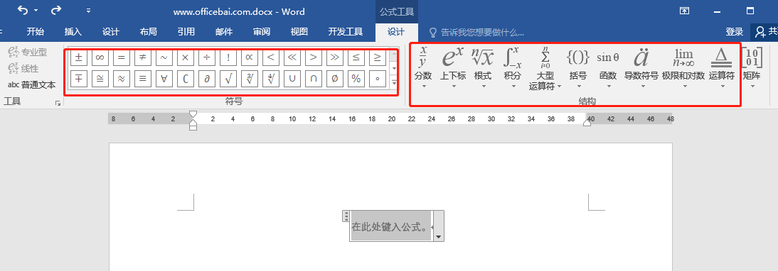 如果内置公式库里没有想要的公式怎么办?点击【插入】-【公式】-【插入新公式】,然后在【公式工具】-【设计】中插入适合自己的公式结构。