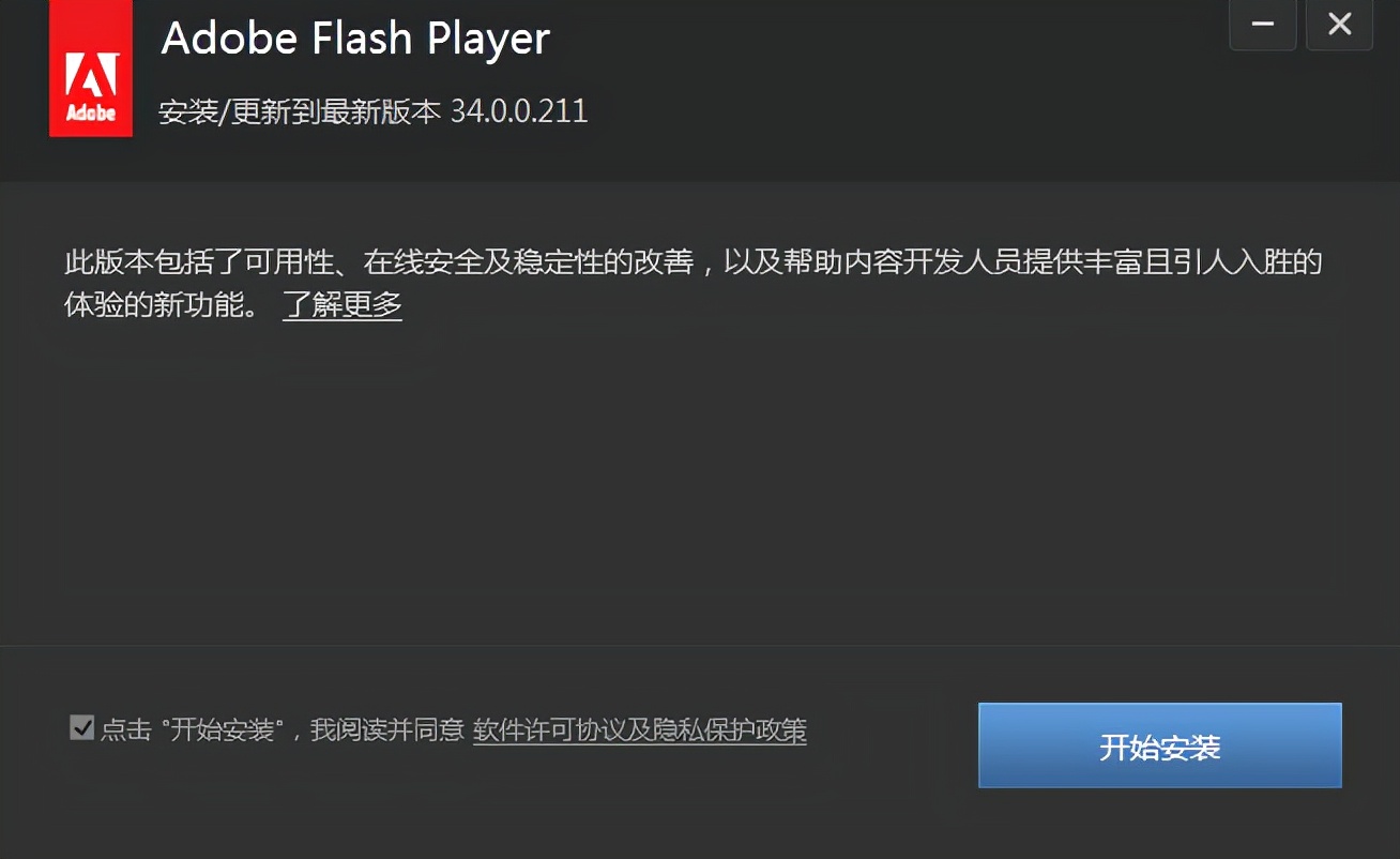 在出现的安装对话框中点击“开始安装”,安装完成后即可正常使用。