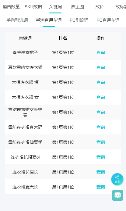 这里大家最关心的就是对手的一个自然搜索引流词,点开关键词,可以看到有手淘引流词,手淘直通车词,PC引流词,PC直通车词,都是非常好直观,通过观察对手的这些词,我们可以对我们的商品及时作出改变。