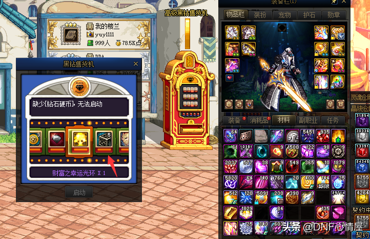 【4】黑钻售货机。跟“道聚城”一样,都是可以白嫖,蕴含了“随机”气息,在黑钻售货机中,你先得开出来才行。“道聚城”被阉割,黑钻售货机产出的品级调整箱,成为玩家白嫖的主要途径。